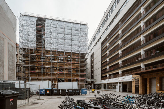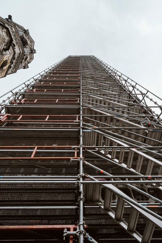 Diese Anforderungen haben wir unter anderem bei Projekten wie dem Bundesinnenministerium in Berlin-Mitte, dem Nikolaikirchturm, dem Neuen Kreuzberger Zentrum oder dem Projekt Doro 28 in Berlin-Friedrichshain erfolgreich umgesetzt. Die Beispiele zeigen, dass Fassadengerüste flexibel, stabil und effizient eingesetzt werden können – auch unter anspruchsvollen Rahmenbedingungen.